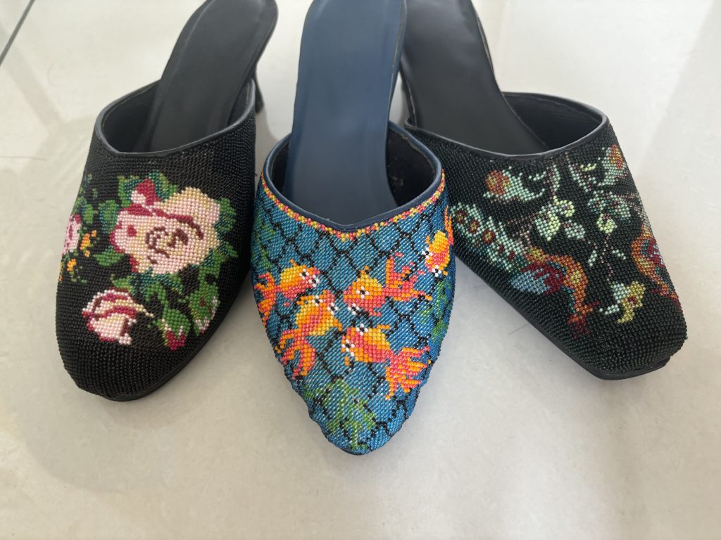 Eventually Lim started teaching students how to make beaded shoes. There are some Penangites who still know how to sew beaded shoes, but Lim is one of the rare few who is teaching the craft. She conducted classes under the Penang Heritage Trust for a decade, and continues to do so at the State Chinese Penang Association.